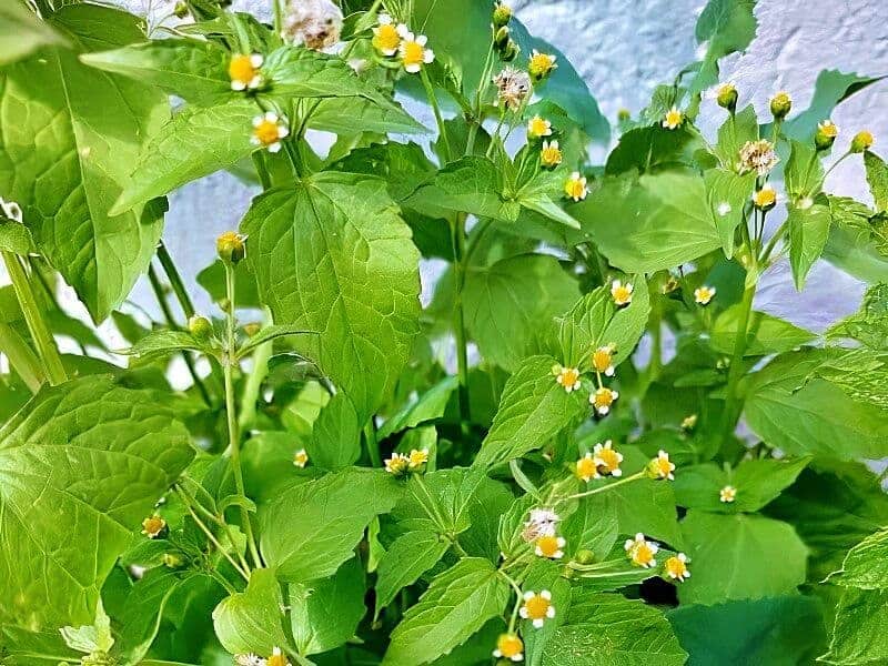 Das Franzosenkraut bzw. Kleinblütige Knopfkraut (Galinsoga parviflora) und das Behaarte Knopfkraut (Galinsoga ciliata) wurden damals von Kolumbus von Südamerika nach Europa gebracht.