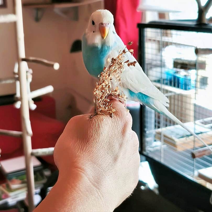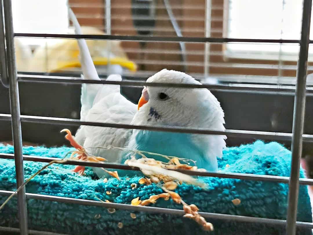 Inzwischen war Montag und unsere Lehrerin fragte ihre Kollegen in der Schule, ob sie jemanden wissen, der sich mit Wellensittichen auskennt. So kam Gunnar zu Thorsten, der ist ein Wellensittichexperte und hat schon 6 Wellensittiche. Thorsten setzte ihn zuerst in einen Käfig, damit er sich an die anderen Vögel gewöhnt. Er gab ihm auch immer seine Medizin.