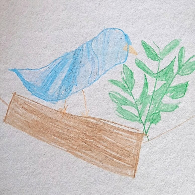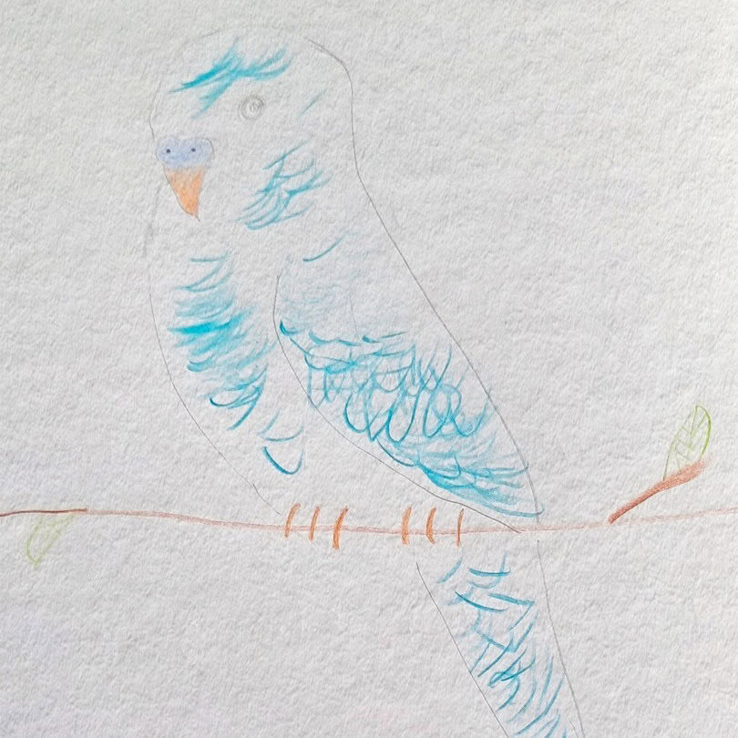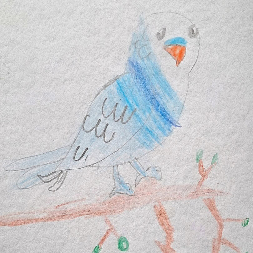 Es war schon dunkel und kalt, als unsere Lehrerin mit ihrem Hund Fina spazieren ging. An einem Busch blieb Fina stehen und schnüffelte interessiert. Als unsere Lehrerin genauer hinschaute, entdeckte sie einen Wellensittich, der verletzt auf dem Boden saß. Sie nahm ihre Mütze, wickelte den Vogel ein und nahm ihn mit nach Hause. Dort setzte sie ihn unter einen umgedrehten Einkaufskorb. Schnell ist sie nochmal losgefahren, um Vogelfutter zu kaufen.