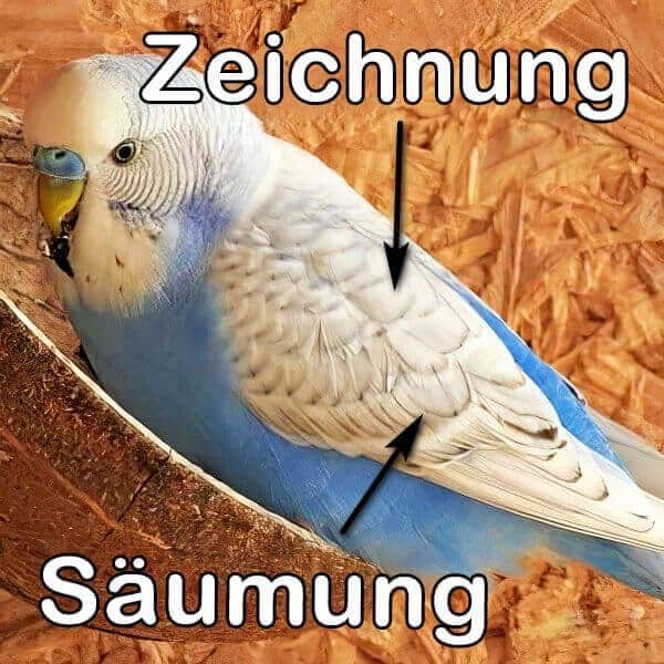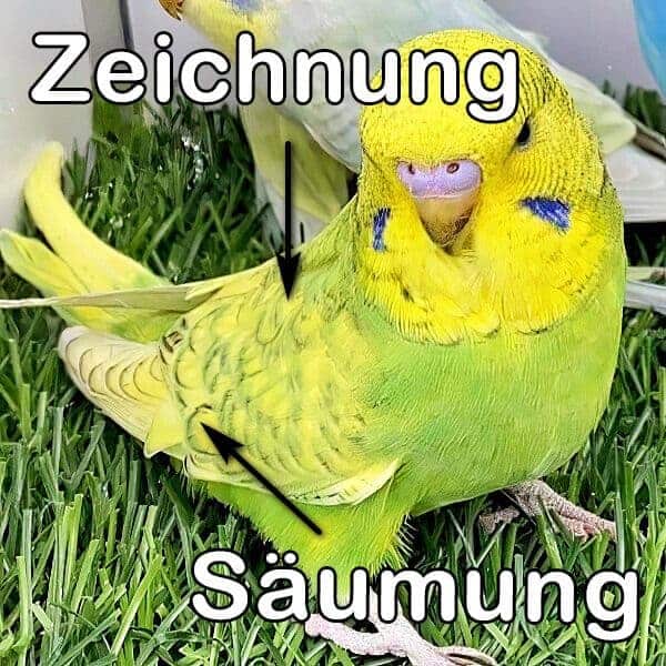 • je nach Farbreihe weiße oder gelbe Schwungfedern mit ebenfalls dunklen Rändern