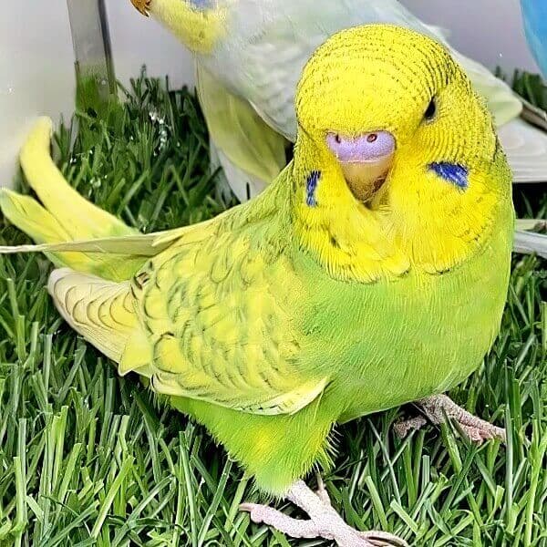 • graue oder silbrig weiße Wangenflecken oder eine Mischung aus beidem