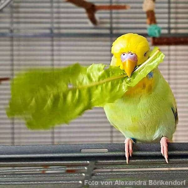 So nutzen viele Wellensittiche auch gerne feuchte Salatblätter als alternatives „Taubad“.