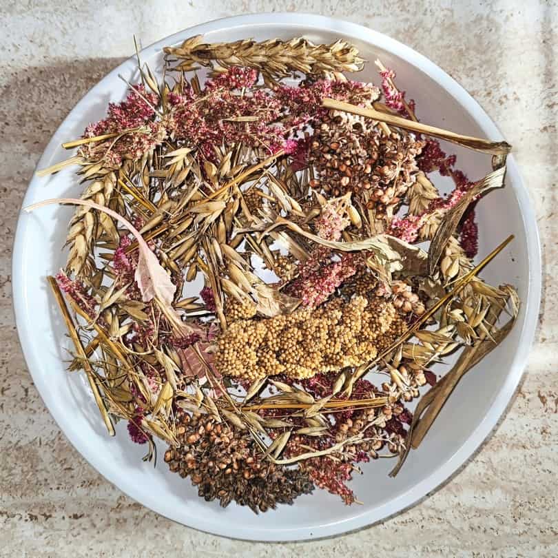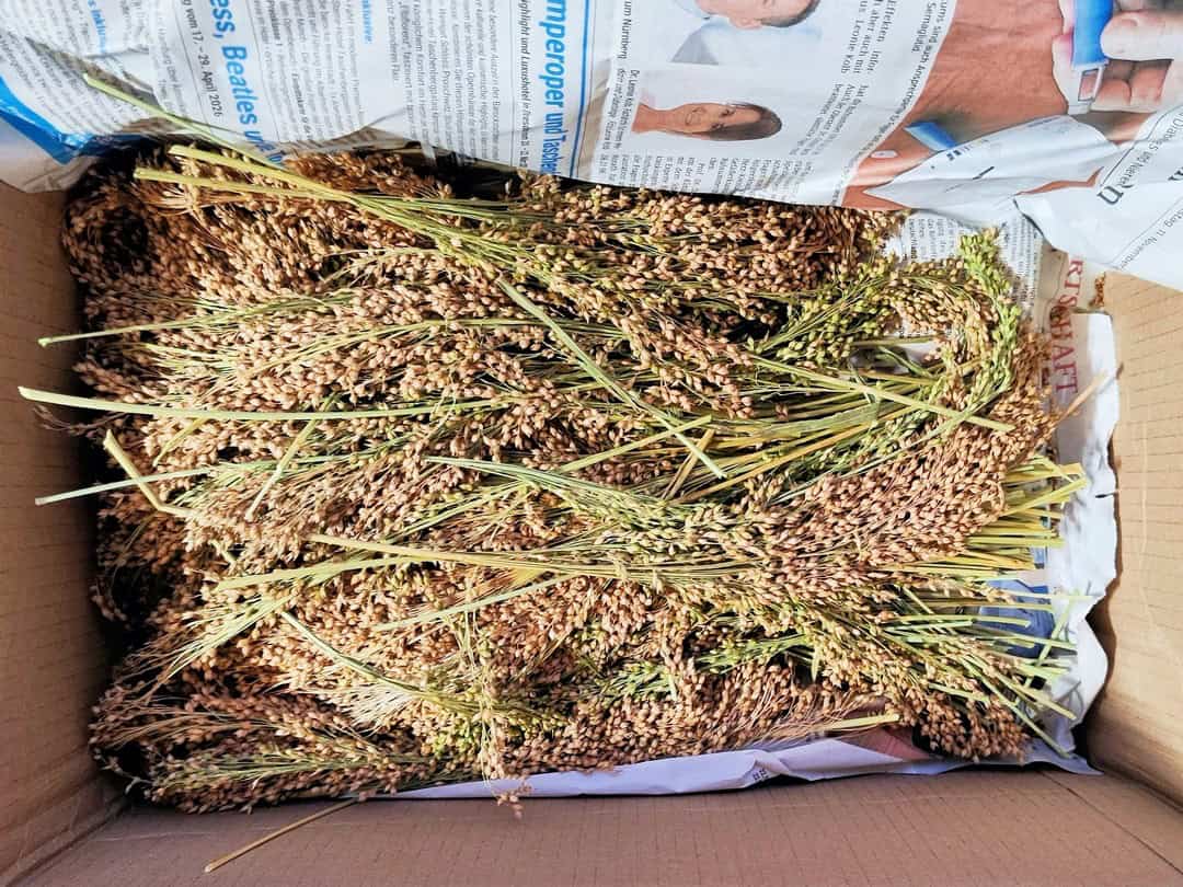 Bei meiner Bestellung habe ich mich für die „Rote Kolbenhirse“ entschieden, die zum gleichen Preis erhältlich ist.