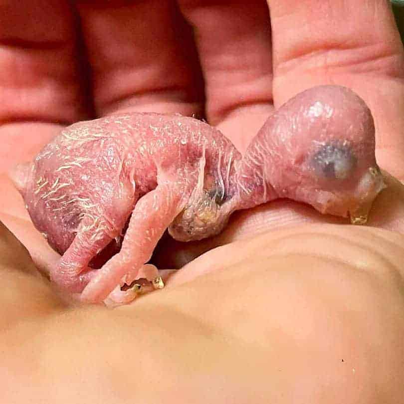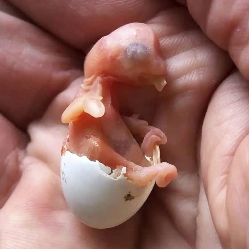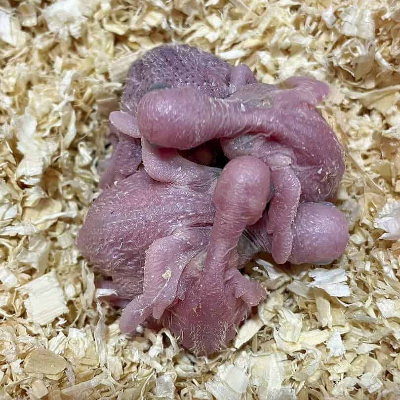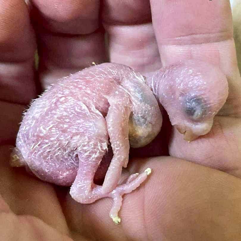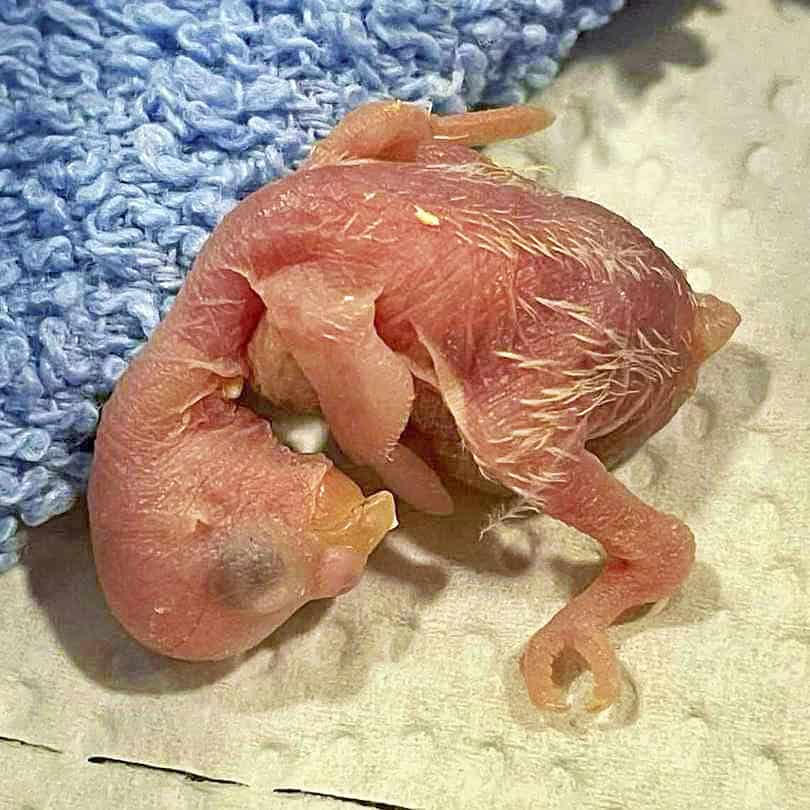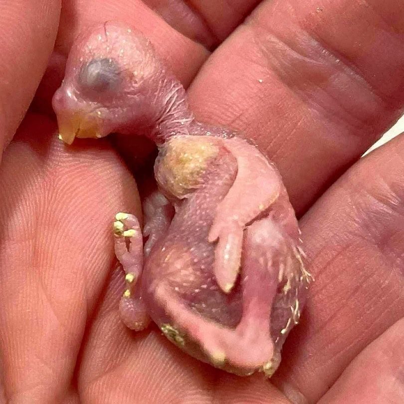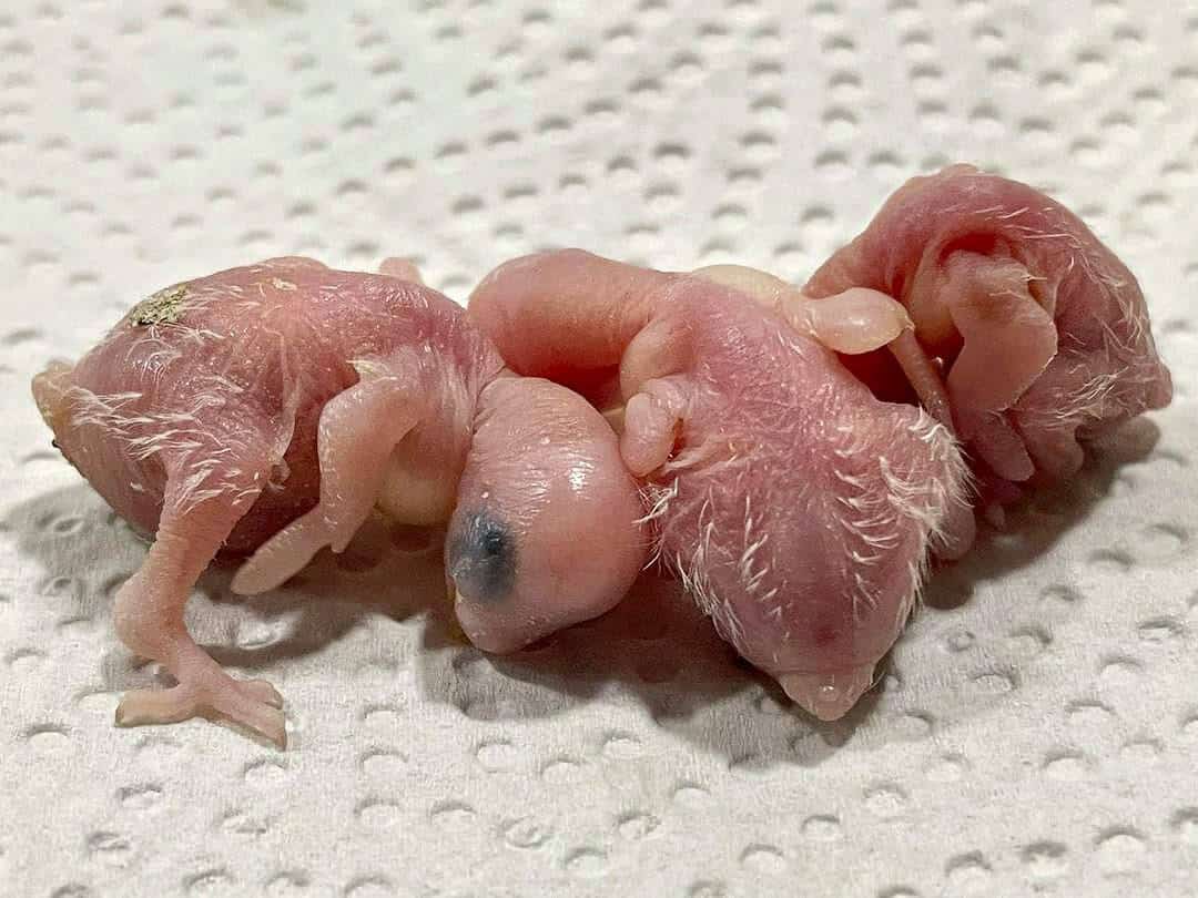 Das älteste der Küken ist 3 Tage alt, während das jüngste gerade geschlüpft ist. Küken Nummer 4 ist zu diesem Zeitpunkt noch im Ei.