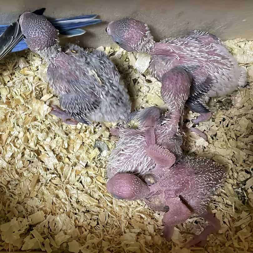 Ab diesem Zeitpunkt beginnen sie langsam die Augen zu öffnen, und immer mehr Federn bzw. Federkiele sind zu erkennen.