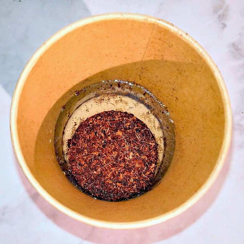 - Kokos-Quelltablette in den leeren Becher legen und ca. 250 ml Wasser dazugeben.