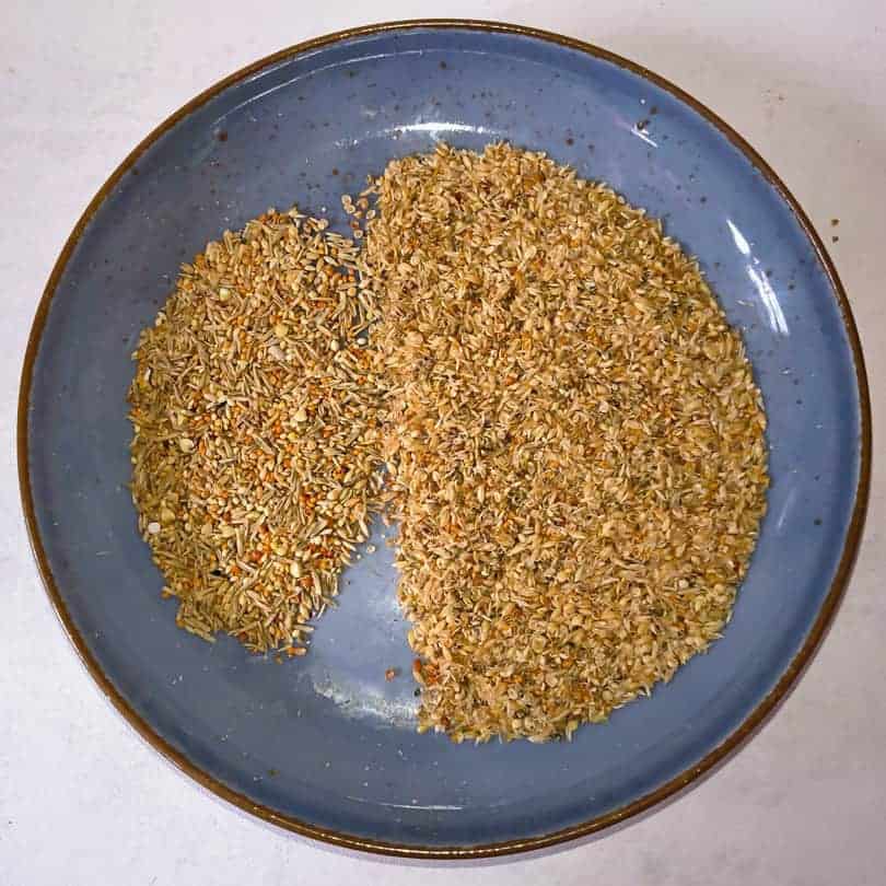 Der Geruchstest hat keine Auffälligkeiten ergeben und der Geruch der Körnermischung wird auch hier vom Thymian dominiert, was einen Anteil von ca. 0,2 % vermuten lässt.
