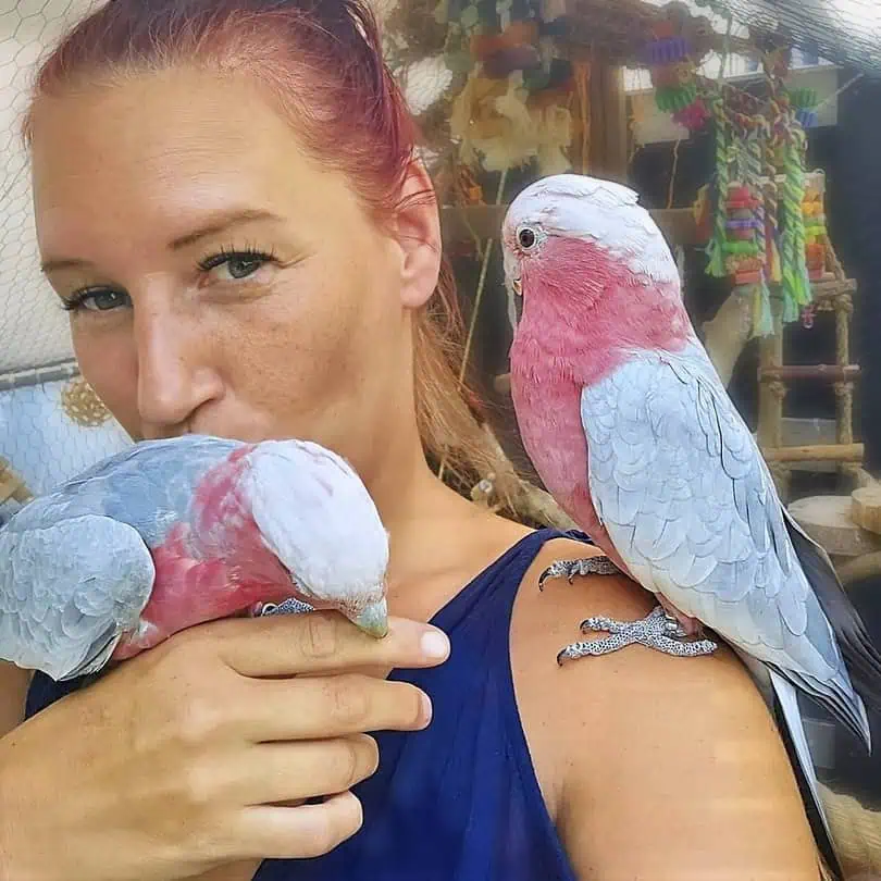 Sie ist sozusagen eine private Papageienhilfe, die vereinzelt Vögel aus schlechter Haltung aufnimmt und zwar aus Liebe, nicht beruflich, wie sie sagt.