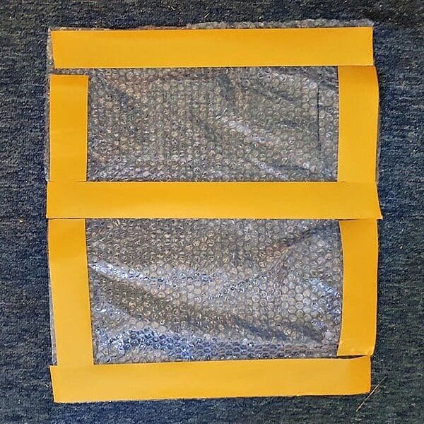 - Noppenfolie mithilfe des Doppelklebebandes auf der Rückseite der Wellpappe befestigen.