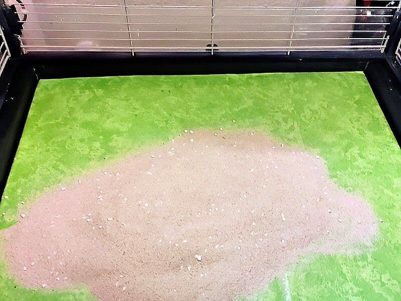 - Wellpappe auf die Größe des Käfigbodens zuschneiden.