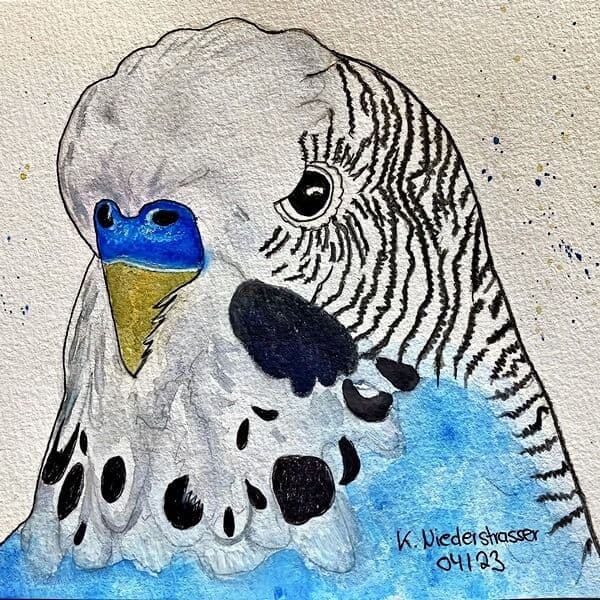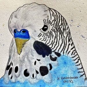 Hier werden Werke von Federlosen zum Thema Wellensittiche vorgestellt.