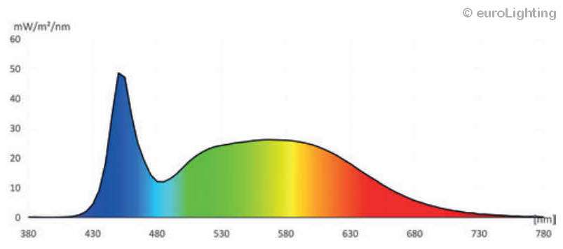 - Gemäß einer Grafik in schwer lesbarer Qualität sollte das Farbspektrum bei etwa 400–750 nm liegen.