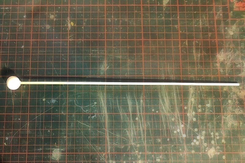 - Vom Holzstab ein Stück mit einer Länge von 15–20 cm absägen.