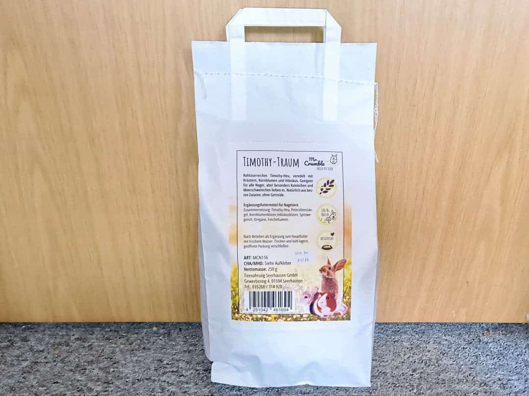Auch wenn das Timothy-Heu von Mr. Crumble in erster Linie als Strukturfutter für Nager und Kleintiere angeboten wird, ist dieses genauso gut für Sittiche geeignet.