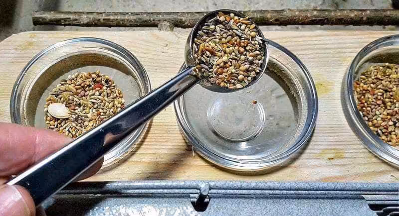 Die Wellensittiche hingegen erwarten täglich die richtige Menge an leckerem Körnerfutter, kredenzt zu bekommen.